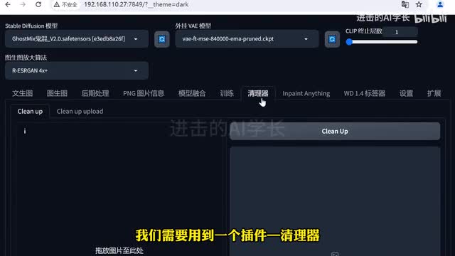 教程很简单,首先我们打开stable的fusion的web u i界面,去除水印,我们需要用到一个插件清理器。他的英文名叫做key nob,这个插件呢我们在扩展中是找不到的。