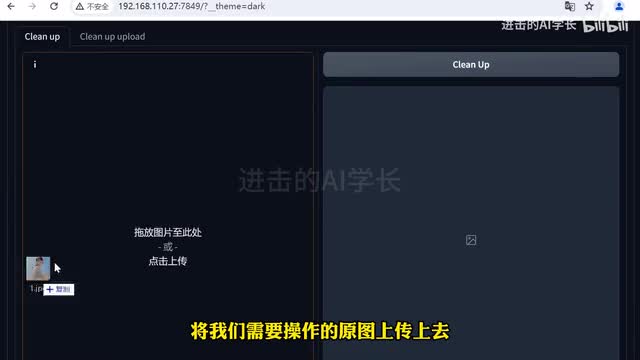我已经将它打包好放入网盘中了。我们回到清理器部分,将我们需要操作的原图上传上去,用画笔涂抹我们需要去除的地方。