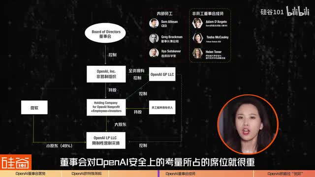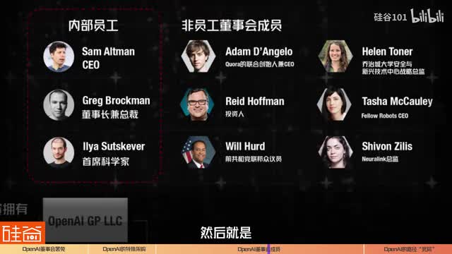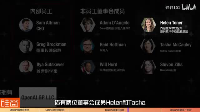 那么这里插一句哈,我这两天看到很多人在批评啊open a i的董事会不专业和草率啊,甚至把它上面holly直接称为好莱坞演员约瑟夫莱维特的老婆,是王者list呢称之为马斯克的傀儡,来突出董事会成员对a i的一无所知啊,那这一点我是不认同的。虽然我们都爱八卦,但是女性在被提起亲密或者八卦关系之前呢,首先是她们自己。那么他想和时光呢都是非常杰出的女性科学家,他们是谁的老婆或者八卦关系不重要,他们的价值观,他们怎么看待ai才重要。那其实最开始的时候,董事会席位呢是有它存在的道理的。sam奥特曼想通过董事会投票权来保证公司朝着最初的使命,也就是通向a g i来服务。