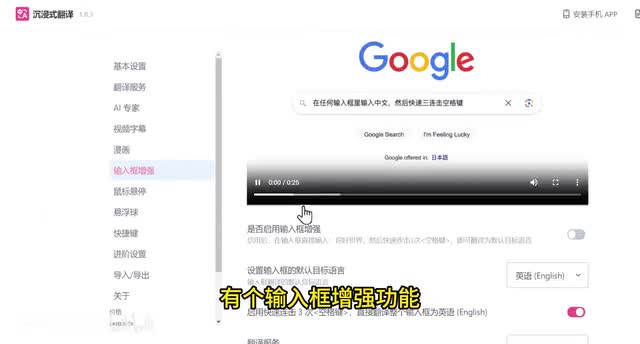 这个插件安装好之后,你就可以使用我刚刚演示的功能进行输入框内的翻译了。因为这个插件里面有个输入框增强功能,连续三次按空格键就可以直接翻译整个输入框的内容为英文。之所以翻译成英文,是因为它的默认目标语言是英文。