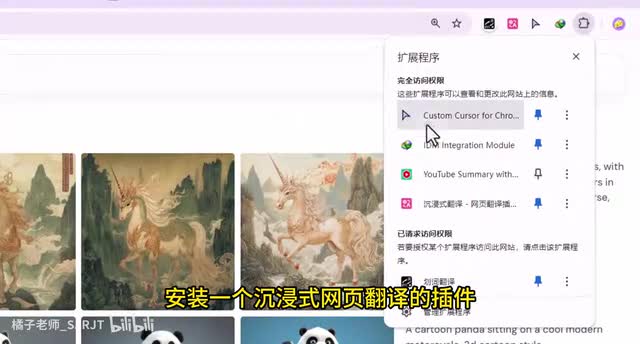 要实现刚刚我所演示的这些功能,大家只需要在chrome浏览器里面。安装一个沉浸式网页翻译的插件。安装插件的方法也非常简单,你可以点击这个按钮来到管理扩展程序,搜索到沉浸式翻译。