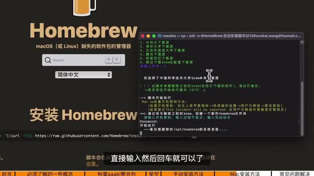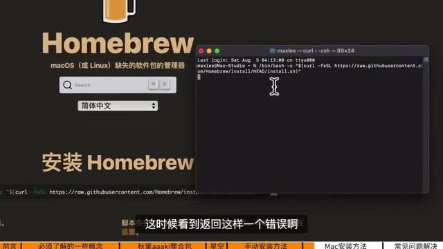 首先我们要安装home blue这个程序,打开home b r u e的官网,直接复制这段代码,然后按command键加空格键搜索终端,打开这个终端程序,把刚刚复制的这段代码粘贴到终端里面,按回车。这时候看到返回这样一个错误啊,原因就是我们刚刚复制的这个home的网址啊已经不能用了。在这里,我们重新复制一个备用的安装网址。这些代码程序啊同样会在评论区给到大家。某音的同学评论安装,我会一一私信给你们。