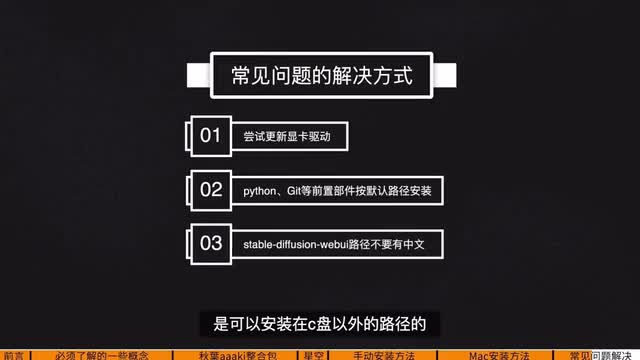 这里我不能还原大家在安装过程中遇到的问题,但可以给大家一些解决的思路。当遇到报错的时候啊,尝试更新显卡驱动会解决一部分错误的问题。另外像python、git这些前置部件一定要按默认的路径来安装,安装在c盘不要改变它们的位置。stable defintion web u i是可以安装在c盘以外的路径的,但安装的路径尽量简单一些,不要套太多层文件夹,并且保证有充足的硬盘空间,这样就很大程度减少出错的几率了当做好上面的这些步骤,还是出现一些奇怪的问题的时候,可以尝试换一个整合包,或者是用纯手动的方式来进行安装。总有一种方法是行车通道。