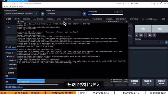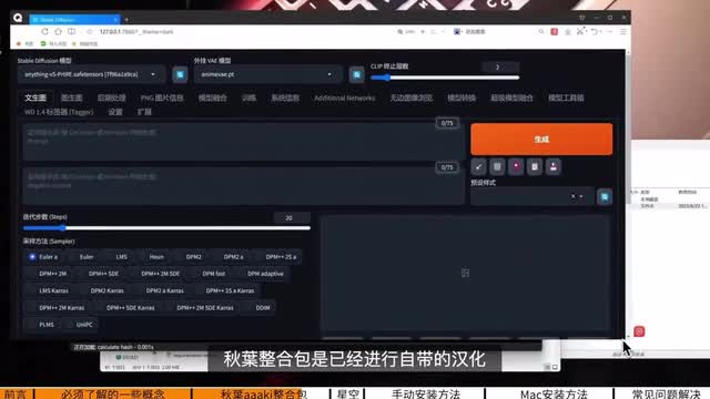 等待程序自动加载必要的启动项。就会自动进入stable division web u i界面了。可以看到,秋叶整合包是已经进行自带的汉化。还有安装了图像浏览器,像control net等常用的插件。自带anything v五的模型。