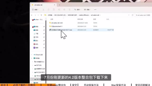 新手推荐安装秋叶老师的整合包,喜欢经典一点或者是使用a m d显卡啊,配置比较低的同学。推荐安装新风老师的整合包。首先把秋叶老师七月份刚更新的四点二版本整合包下载下来,打开一共有三个文件。首先我们双击这个启动器运行依赖进行安装。这里还有一系列的controller模型,这个我们先不用管啊,在后面的课程会给大家讲解怎么安装和使用的。