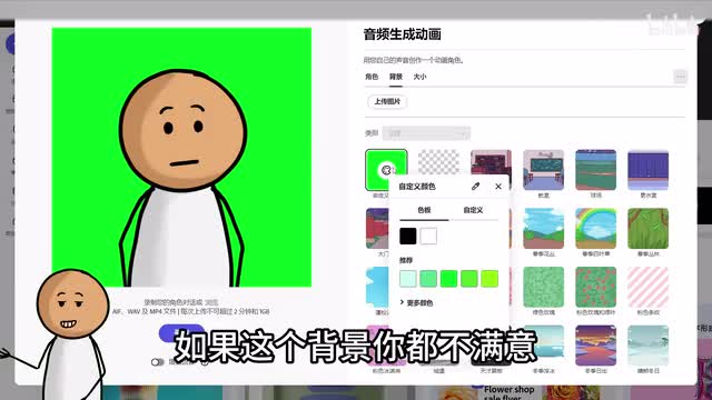 那边点击下拉里的音频生成动画,我们看到资源库里有很多人物角色。我们选择这个火柴人的人物角色,再选择一个合适的背景。如果这个背景你都不满意,我们可以选择例如背景在后期进行视频剪辑的时候再进行扣除。然后我们来把这个比例调整为九比十六,再添加我们刚才准备好的第一个角色的音频。