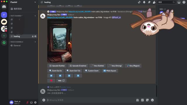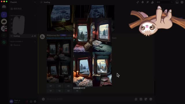 没关系,既然以文生图的效果不佳,那就试试以图生图。这一次我们把图片喂给mid journey,让它以这张图片为参考,再根据提示词进行生图。点击加号上传文件,选择图片发送。鼠标移至图片上方,右键选择复制链接。然后在对话框中输入斜杠,选择imagine指令。先把刚才复制的链接粘贴过来,输入空格,再输入提示词。我想要的场景是列车车厢以及一扇大大的窗户。
