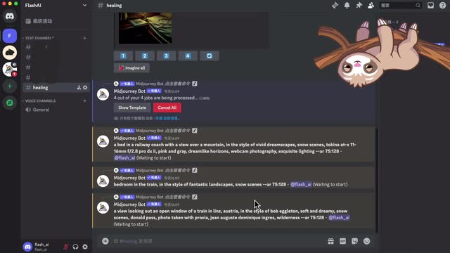 因为做的是短视频,画面比例设置为九比十六,发送指令。再来看一下效果。这次出图有点参考图的味道了。对了,补充一句。mid journey的出图顺序是这样的。我比较喜欢第一张,让它再多一点变化。选择唯一。