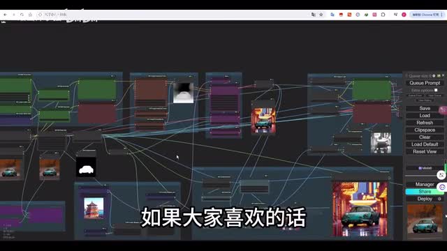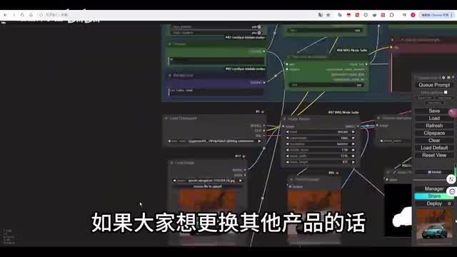 大家好,今天分享的这个工作流是对素材图片的产品进行一个背景更换。比如说我们上传一个汽车产品的一个素材图像,我们可以通过i p adapt风格参考,再通过conon net的深度模型控制,将深度图呢提取出来。按照我们的s d x r大模型第一次来生成,随机抽取一张生成的结果图像。在后面的节点组,我们继续使用了s d一点五的模型来配合上使用i c light打灯光的模型,来为前面生成过的这张结果图像呢进行一个i c light的一个打灯光的一个效果。