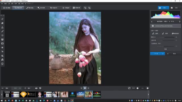 滤镜进行替换。可以看到这些效果还是蛮不错的,我们需要哪个就点击哪一个即可,然后这款软件它还有一个批量处理的功能,我们可以批量对人物进行调色或者是尺寸调节,添加水印,这个工具都是支持的软件,也是一个完全免费的状态,可以看到它也是不需要收费的。同时它里面的左边的状态栏也会有包括像个p s一样的一些简单的修饰功能,或者是仿制图章啊,或者是画笔啊,在这里面都是可以进行使用的。