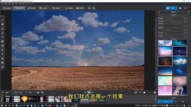 大家可以看到我这里面也是对它在进行一个调节。我们需要哪一个天空,我们就点击哪一个效果,它就会自动识别。然后并且把这个天空给置换上去,这个效果还是非常不错的。