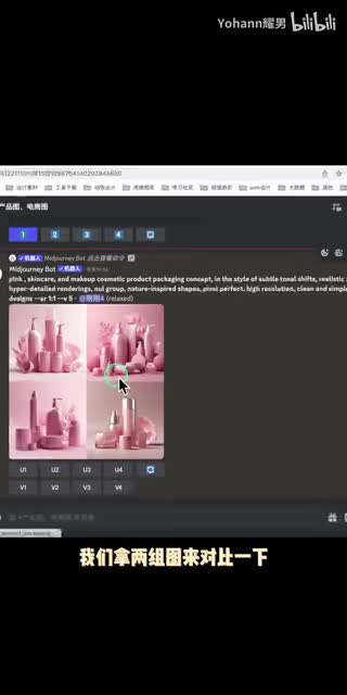 我们再来看看有midi journey自带的describe功能生成的prd这里我们随便选一个,就选择比较长的这个,我们点击下方对应的数字就可以直接生成。
