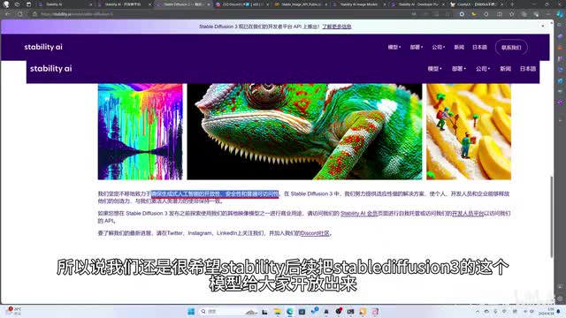 目前我们是需要通过a p i请求的方式去调用stability服务器上面的stable fusion的绘画接口。所以这一点还是非常遗憾的,目前官方并没有开放出来本地部署的模型,但是官网说了他们是坚持人工智能的开放性、安全性和可访问性的。所以说我们还是很希望stability后续把stable version三的这个模型给它开放出来,后续再搭配controller和ip doctor的一个风格适配,那简直强到夸张。那个时候ai绘图界的扛把子face division三莫属,就再也没有made journey的什么事了。