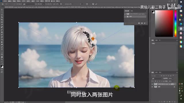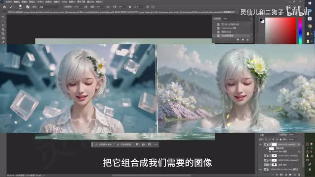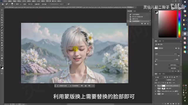 不过没有关系,我们可以拯救它。叉l扩散出的图像人物脸部与原图有较大的差异,所以我们需要先修正人物的脸部轮廓,先来到p s做简单的脸部替换处理,同时放入两张图片,然后给其中一张图片添加蒙版,选择蒙版,用黑色画笔在蒙版上涂抹我们需要替换的脸部区域。在正式修复之前,我们还需要对图像的调色做一个准备工作。