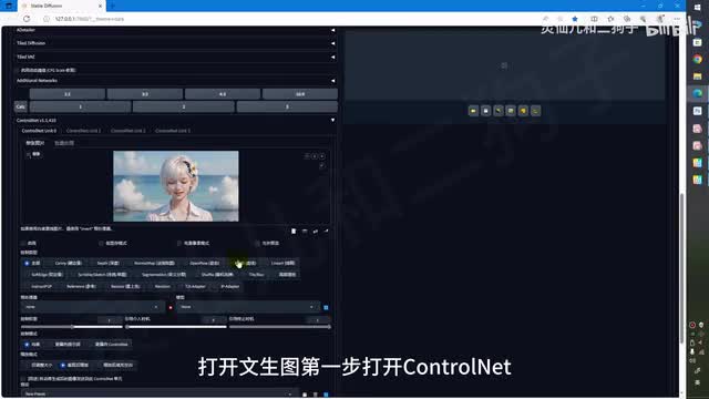 那我们想要对背景以及人物其他部分做出更大的变动,且同时保留原图的色彩和光影,应该怎么办呢?如果你喜欢这一套s d的免费教程,希望大家多多支持,你的每一次三连才是我们将教程做下去最大的动力。打开文书图,第一步打开control t选择tile调整向下采样率,点击启用,打开完美像素模式,引导时机调整为零点二和零点四。我们只需要使用tile在百分之二十到百分之四十的时候输入颜色信息,再打开第二个controlled的深度,同样引导时机调整为零零零点。