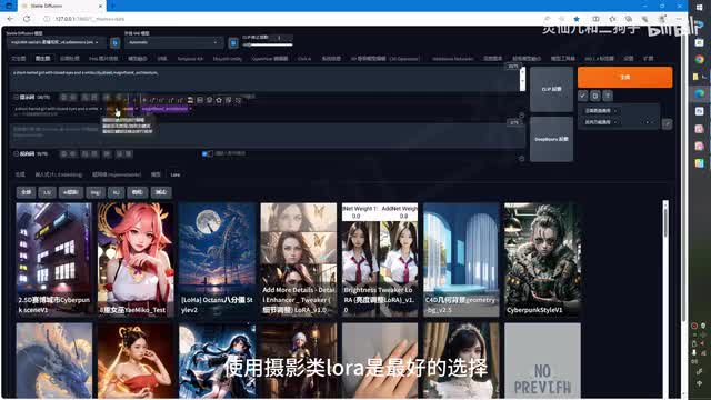 接下来就是常规抽卡,抽到自己满意为止。如果你希望我们更换的背景更加富有视觉冲击,使用摄影类罗拉是最好的选择。我们无需对模板和参数做任何调整,只需要选择需要的罗拉,根据作者的建议调整权重,加入触发词,剩下的交给s d就可以了。