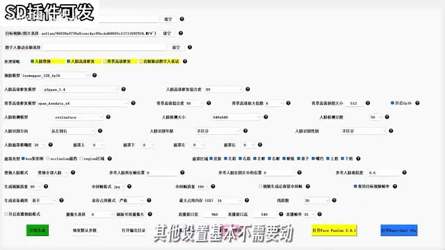 然后勾选下方的人脸替换和人脸高清修复。下方的升降设备这里如果你有图片的话,可以改为显卡,显存大的话,线程数可以调高一些。其他设置基本不需要动,然后点击下方的开始生成就o k了。稍等片刻即可生成完毕,然后点击打开输出撸,就可以看到成片视频。兄弟们,我觉得这个效果应该能是一个三连了吧。