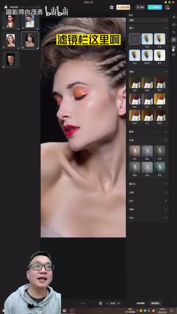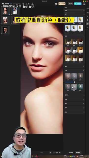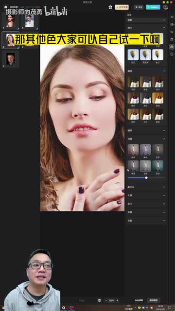 还是不错吧,我们给它调一下颜色调这里就测下滤镜啊。第五一个。实现么开颜色脸上就偏黄。啊,试一下其他颜色呢,脸上是比较偏粉,当然可以调和它的程度。