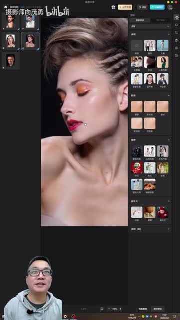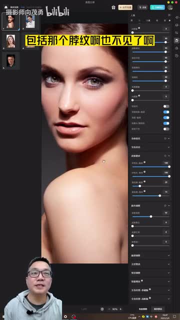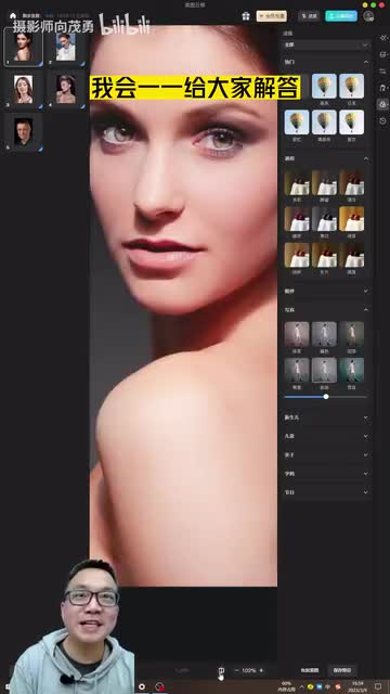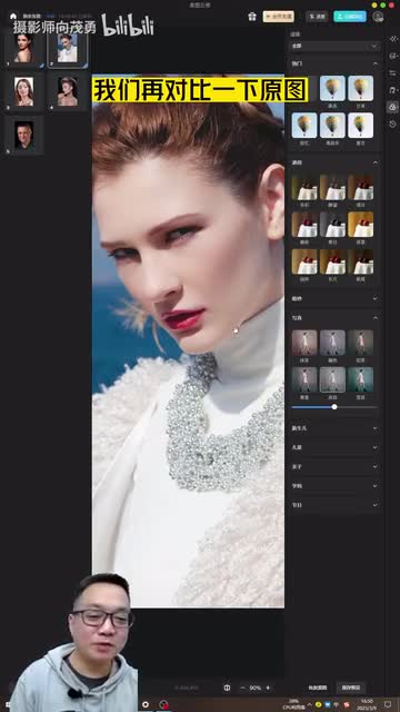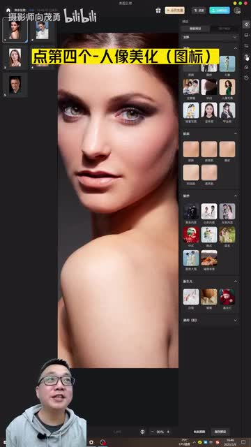作为人像摄影师,经常会有人找我修图说向老师你能不能帮我修一张图?那大部分情况下我是拒绝的,因为我实在是太忙了。现在我就不一样了,现在如果再有人找我修图,我就说来我教你三十秒钟,教会你修大片。那我们试一下,首先我们用电脑打开美图研究软件,我们随便打开一张照片,把它放大看一下,放大,然后点右上角这里啊,然后点透亮机。大概十秒钟左右,好皮肤基本修好了。
