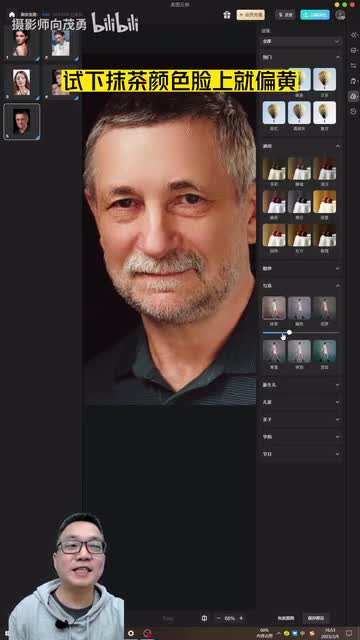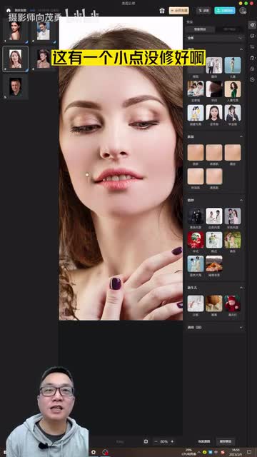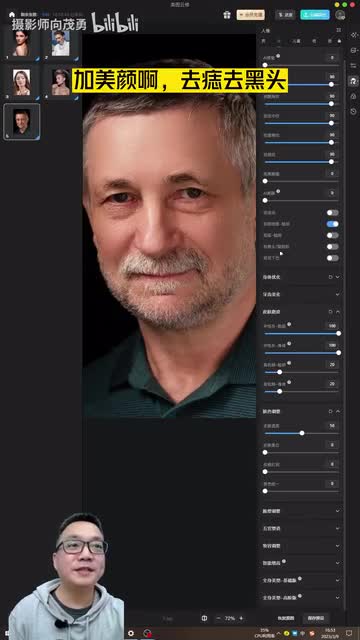 我们再试一个啊,依然是一个,然后来到呃测量机啊,等十秒。好,修好了,我们再调。人像美颜啊,去痣去黑头。这个老人的这个高地铁,我们就不修,它越修越平,不是啊?好,基本修好了,我们对比一下啊。