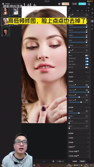 我们再看一下其他的啊,来去痣去黑头,身体开高低频一下,高低频只有脸上点了也去掉了。试试看a i美颜一下,基本上不错。我们看一下对比。圆头吸合图。