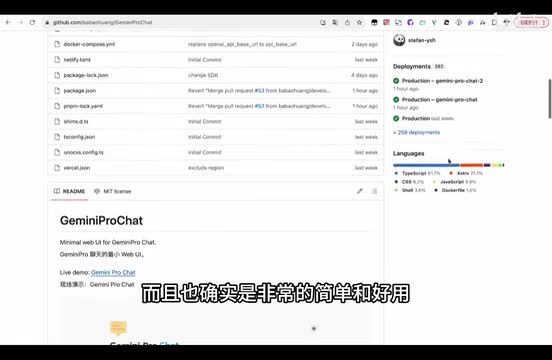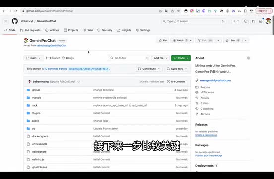 这个网站如果使用的观众太多的话,可能会受到一定的频率限制。所以你还有一个方法,就是你自己也用那种非常简单的方式去通过a p i key去搭建一个属于你自己的套壳的体验的网站。我来给大家介绍一下应该。怎么去做?呃,首先我们打开这个github上的german pro church的这个项目地址。