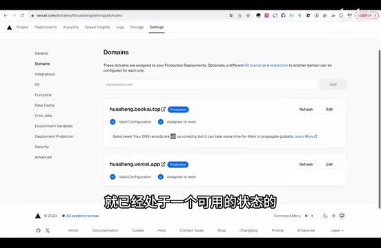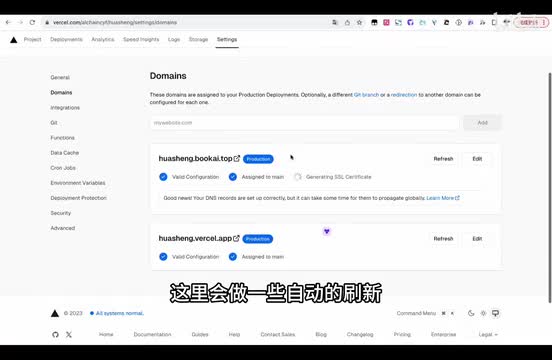 然后如果你还想进阶一步的话,因为这是一个vessel的,它提供给你的免费的域名。然后如果在国内的话,有可能会出现一定的就是没有办法使用的那个情况。所以我接下来再有一个相对进阶一点点的教程。就是如果你像我一样有自己的网站,有自己的域名的话,你还可以就是增加一个。