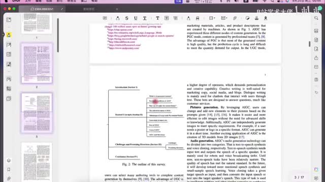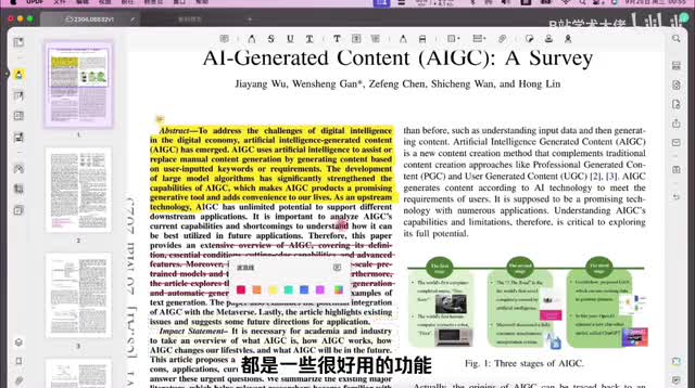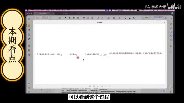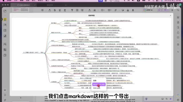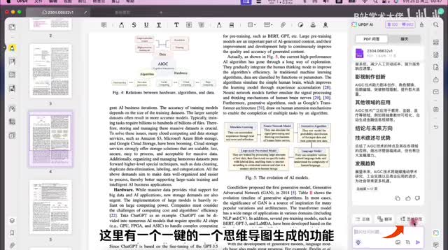 在a i的这个功能里面有一个p d f的一个问答窗口和聊天窗口。我们在窗口里呢就可以去快速的去提问,让ai帮我们总结。可以看到总结出来的这些结果,他的思维逻辑都很清晰,把整篇论文的一个主要内容都帮我们总结出来了。好,可以看到最后总结完之后呢,我们整个文章的思路、研究内容、研究方向都已经很清晰了,对吧?我们大多数比较优秀的同学经常会用到一个工具。就是思维导图去帮助我们去辅助的去理解和记忆这些文献的一个研究的内容和思路。