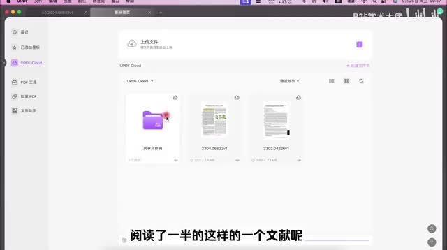 甚至在一些电子试卷啊,或者我们在上课做笔记的时候,也都是一个很好用的工具。因为像u p d f这样的一些软件呢,已经包含了像pc端和移动端,比如mac windows、安卓、ios这样的一些平台已经全覆盖了。同时呢它有一个功能,这样的一个窗口,阅读到一半的这样的一个文献呢。保存在我们这个云文件当中,直接把文件拖到这里,就可以在云空间当中进行一个同步。这个时候电脑端上传到我们的云空间之后,在手机端再打开u p d f,它的这个云空间可以看到刚才的文件已经同步过来了。