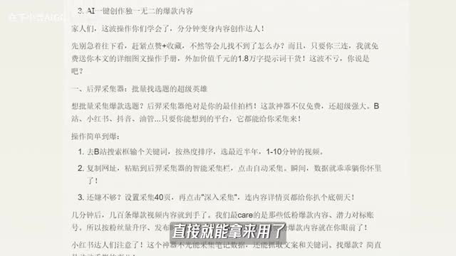 你想怎么去编辑就怎么去编辑,而且可以一键复制。并且呢这个地方我们点这三个点,我们还可以直接下载为word或者是p d f文件。这下就很简单了对吧?我们就可以告别自己手动复制粘贴的这样一个任务了。o k第五个就是我们最重要的一步,我们刚刚找到了对标的选择,对标的文案。现在我们要把这两个东西把它重。