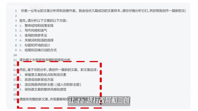 好,接下来我教大家两招。第一招呢叫多款对标文案大法。也就是把我们刚才采集到的多款对标文案直接发给a i直接发给cloud。然后让他分析文案的写作特点、句式结构等等,再让他干嘛呢?基于上面分析的这些特点,让它进行改写和二创,整个过程不到几分钟文案就写出来。第二招叫爆款标题生成树,也就是把采集到的爆款标题直接发给a i,让他分析这些标题的特点,然后根据你的主题让它生成一个新的标题,一键复制轻松搞定。