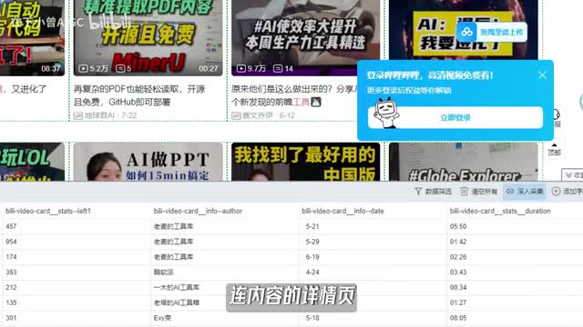 我们点击这个自动采集,瞬间相关字段就一键采集在你的这个库里面了。那在这儿呢你们可以去修改它的字段名,而且这儿呢还可以设置采集的页数,比如说四十页。想要更深入采集啊,你可以点这儿,连内容的详情页呢都给你扒一个底朝天。别人来到这个详情页,想要收集这个点赞数、弹幕转发数据、粉丝数,统统都可以点击这个立即启动,几分钟后几百条相关的视频内容就到手了。那我们重点去关注那些低粉爆款内容,潜力对标账号。