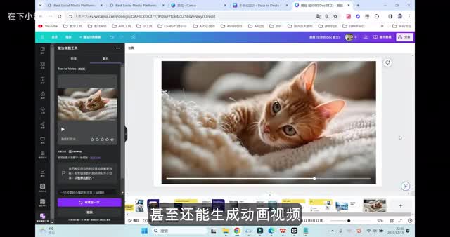这个地方呢它还有一个跟runway联动的纹身视频的这样一个功能。我们也可以来看一下哈,同样的输入一个猫猫趴在沙发上玩线吧,我们来看一下它的这个效果,可能要稍等一分钟的时间。哇哦我觉得这个效果真的太棒了。整个的这个视频的质量真的超级逼真,而且效果也非常不错。那大家下来呢可以自己去玩一玩。