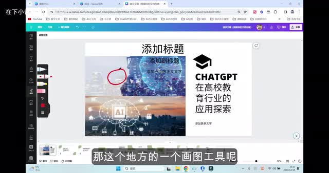 在文字这个地方呢,大家可以去选择到相应。但是它这个地方根据我们的大标题、副标题以及正文去进行了分析。包括我们也可以去上传自己的一个字体包。那这个地方的一个画图工具呢,我们可以自己任意的去发挥自己的想象。在这个弹幕呢就是我们的一个历史记录,包括像我们自己建立的一些文件夹啊,方便我们的一个图层管理。