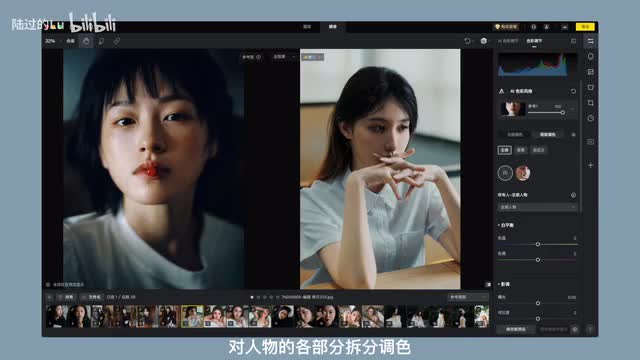 那如果还需要微调,也可以选择局部调色,对人物的各部分拆分调色板。可以看到这里的各个分区也是非常细致的。