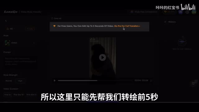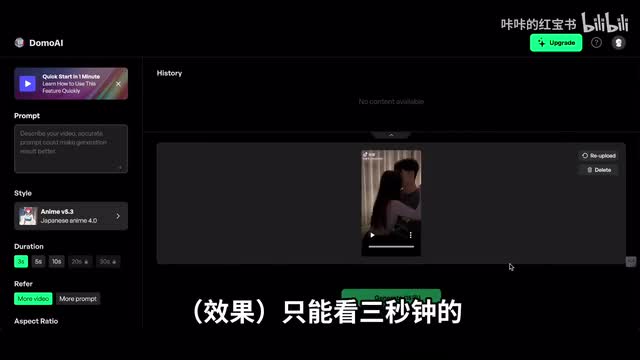 为了转会,我上传好视频之后,点击generate video工具就开始自动帮我运转了。我们来一起看看成品。因为是免费用户,所以这里只能帮我们转回前五秒。我觉得效果做得还是蛮精细的,整个动画丝滑不卡,人物刻画的也很细致,甚至男生的衣服上的细节都有做出来,免费效果就能做到这个份上,我觉得还是不错的。