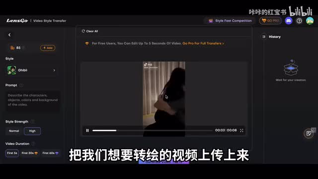 那我们赶紧来试用一下,因为next go是有免费额度的,所以大家也可以先尝试,看看效果满不满意。我先在style界面里面选择一个日漫风的效果,然后回到主操作台,把我们想要转会的视频上传上来。在这里我就可以以情侣治愈的真人视频来举例哦。大家也可以根据自己想要的赛道来调整素材和画风,比如搏击健身类的视频,或许就可以尝试漫威画风之类的,以此类推。