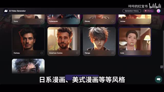 和前面两个工具有所不同,它是专门针对人物的风格化转换工具,操作使用更简单直接。同样也是简单用谷歌账号注册一下首页,会让我们选择想要风格化的模型,这里分为男性和女性,每个性别都有七个模型可以选择,比如k pop、赛博朋克、日系漫画、美式漫画等等,风格也是集中在各式各样的漫画风格上,种类还是蛮多的。我选择了一个男性的漫画风来尝试一下,操作也非常简单,只要将我们的原始视频素材导入就可以了,很快它也是生成了转换视频。怎么说呢?对比前面两个工具,我觉得这个软件的效果很明显差了一点。