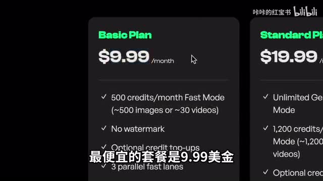 不过我看了一眼东盟a i的价格,虽然效果更好,价格也更贵一点。如果是按月付费的话,最便宜的套餐是九点九九美金,elan s go贵了一点点。还是那句话,大家可以看自己的情况来选择。下一个给大家推荐的叫a i video generator。