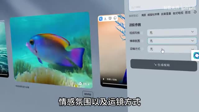 文字视频下面还有进阶参数,包括视频风格、情感氛围以及运镜方式。