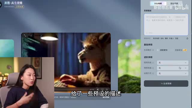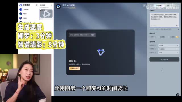 还多了一个你可以不要什么的参数,自己可把控的东西多一些,所以我很喜欢。那我们看一下效果好吓人。同样啊和吉梦一样,对于这个。人物的脸部处理是达不到能用的标准的,所以还是质朴聪明啊。他就给你一个背影,等待时间大概是三分钟左右,一个视频是消耗十个灵感值。