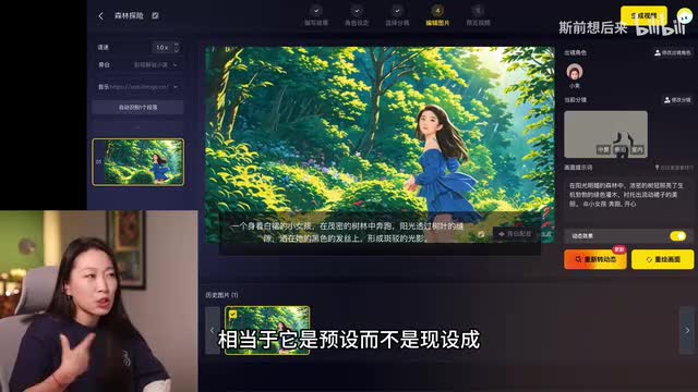这一步等了五分钟左右,全程大概七八分钟。这一幕还是很美的,但是怎么这就只有三秒钟哦,然后我的白裙子给整没了,脸是好看的。因为提前我们已经选好了,相当于它是预设,而不是现实中。感觉这种很适合做那种漫画,就是多一些分镜,然后每一步增加一些微弱的动态。比如说女主角的发丝飘动啊,它的裙摆啊随风飘动啊,这种动态的效果。