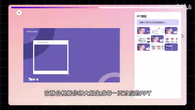 比如我选择商务风的这一个模板,点击右上角的生成p p t,它就会根据你的大纲生成每一页对应的p p t,并且每一页逻辑清晰美观,然后等待一下就可以预览。而且你还能够对它进行编辑。