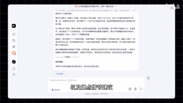 然后还有这个爆款网文生成器,比如我让他以马斯克重生在中国为开头,创作一篇古代武侠风格的短篇小说,字数在三千字左右,他就能快速生成,并且还会给你创作思路以及爆点情节建议。然后还有这个唉t百事通,比如我问他怎么去除图片的水印,他就能搜索到可以在线去水印的网站,然后随便点击一个进去就能解决你的问题。