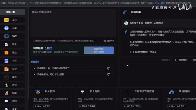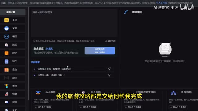 今天小木给各位爱旅游的小伙伴们推荐一款制定旅游指南的好东西,它就是近c i这款人工智能不仅仅具备chat g p t三点五以及四点零的对话功能,最最最重要的就是它这个应用广场里面富含了众多旅业方面的a i可以应对不同的场景。
