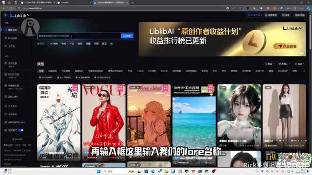 laura这边我们选择海棠,并且在正向提示词当中去修改一下,使用我们laura推荐的提示词。这个laura推荐的提示词。我们可以去live的网站,根据我们的laura名称搜索对应的laura,然后在详情页当中拷贝作者或其他玩家提供的推荐提示词。这里我们来演示一下,打开我们的live live网站,在输入框这里输入我们的loa名称。那么搜索出来之后呢,我们点击到laura的一个详情页,然后可以看到这个是作者提供的案例图。在图像的右下角一般有dora推荐的这个正向提示词。这里我们直接复制它的正向提示词,然后回到工作流当中,将我们拷贝的laura提示词粘贴进来。ok那么完成了我们laura和提示词的更改之后,整体风格已经完成了切换。