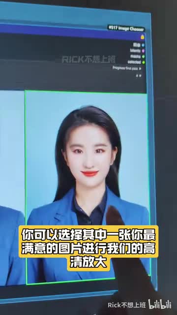 第一次渲染给到我们四张可选的证件图片,你可以选择其中一张你最满意的图片,然后进行我们的高清放大。
