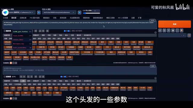 是一些关键词,常用的关键词呢有很多,比如一些起手式、八k分辨率、最佳渲染的细节细致等等。后边我还加了一些这个头发的一些参数,然后彭发高马尾这里反向的刺也很关键,比如有一些这个低质量,或者是说生成这种额外的肢体等等。这个一定要写。
