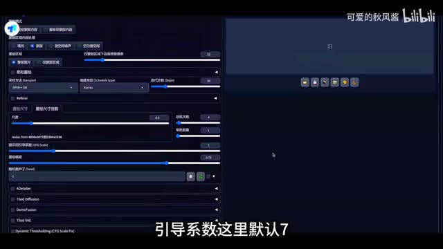 咱们电脑的这个显卡不是特别充裕的话,单批次单批的数量就调成一就ok了。然后再接下来。引导系数这里默认七可以不变,但是重绘幅度这里我试过几次,它重绘幅度调成零点六左右是比较完美的。