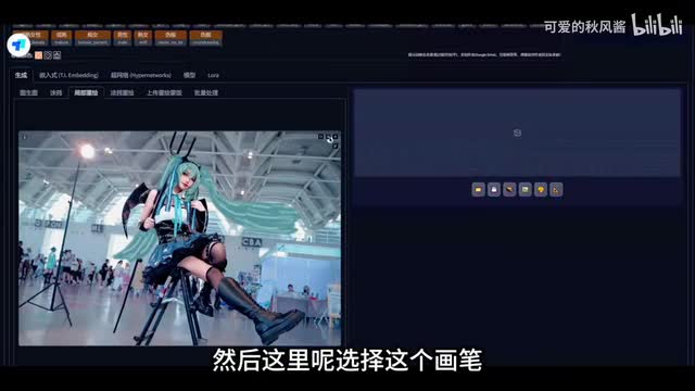 这里看到cos老师出的是初音未来标志性把这个松马尾给遮住了,被这个视角遮住了,所以咱们现在要去给他补充一些头发。然后第一步并不是去直接把这张图片拖到s d里边去a i生成,而是咱们先打开p s或者是用微信截图也好,用一些这个手机软件也好,然后给他画一些头发。我们先新建一个图层,不在他不在他本身的图层上更改,然后用吸管吸取他头发本身的颜色,然后用画笔工具调整一下画笔的这个大小,来画一下头发大概的走向。